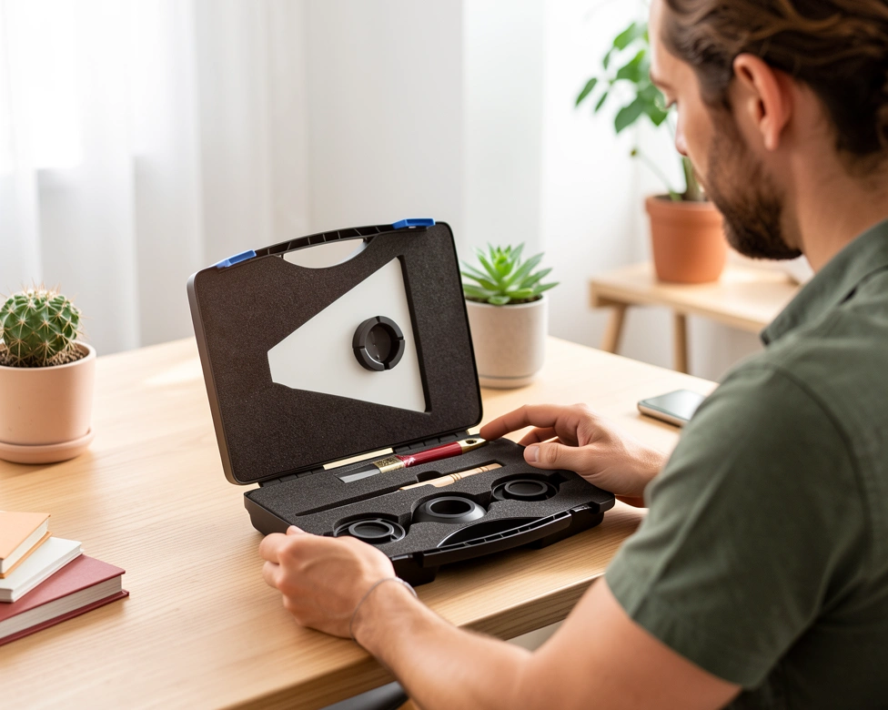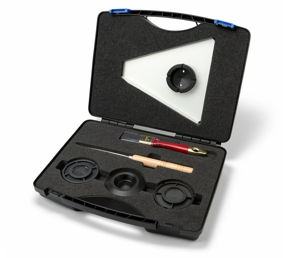 The Accessory Kit 2.0 contains useful tools and a variety of sample cups, which make sample presentation and handling an easy task. The kit contains both Open and Closed Cups that help presenting granular and powdery samples to the SpectraAlyzer. To optimise the filling of the Closed Cup a filling tray and a spatula are included. A brush as part of the kit simplifies the repeated cleaning of the Closed Cup. The Open Cups included are most suitable for the presentation of pasty products like chocolate or sausage meat to the SpectraAlyzer optics. All accessories included in this accessory kit can also be purchased separately.