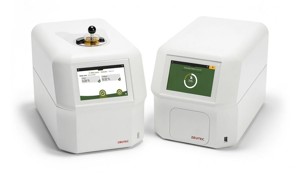 The ZEUTEC-developed NIR method of continuous reference/sample measurement (double-beam system), combining transflectance, transmittance, and reflectance measurements, ensures high sensitivity and excellent long-term drift stability.